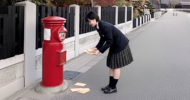 Found on the ground near a red post box, Aira discovers a secret admirer love letter addressed to her. A heartwarming short story about school romance and hidden feelings.